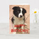 Tarjeta de felicitación adaptable del perrito del border collie del feliz cumpleaños