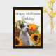 Tarjeta de felicitación del perrito del boxeador del cumpleaños del feliz Halloween