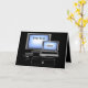 Diseño gráfico original de una pantalla de computadora, laptop, caja de herramientas y herramientas de mano del artista/diseñador Charmaine Paulson en una tarjeta de felicitación del servicio de reparación de computadoras. La tarjeta tiene plantillas para su personalización.