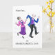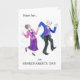 Una carta de bienvenida alegre para el Día de los Abuelos con una pareja mayor bailando de una acuarela pintada a mano por Judy Adamson. El texto del frente es "¡Diviértete el Día de los Abuelos!" y el interior queda en blanco para tu propio mensaje.
