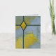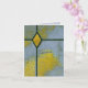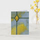 Mi foto muestra vidrio de colores. Los colores son azul y amarillo. Su mensaje puede ser felicitaciones, gracias, cumpleaños, graduación o una invitación. La forma de diamante y las líneas negras me recuerdan a una cruz cristiana sobre el mundo. Agregue su propio mensaje especial.