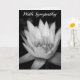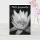 Expresa un consuelo y compasión sinceros con esta elegante tarjeta cristiana de condolencias. La parte frontal presenta una serena fotografía en blanco y negro de un lirio de agua con las palabras "Con simpatía" suavemente mostradas en la parte superior, simbolizando la paz, la pureza y el recuerdo.