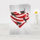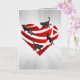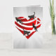 Esta es una tarjeta de felicitación doblada única para amantes de los gatos. Tiene un corazón rojo metálico recortado con 4 gatos negros que caminan hacia arriba, hacia abajo y a través de él con rayos plateados en el fondo. ¡Para todos los amantes de los gatos, especialmente los amantes de los gatos negros! Envíala a tus amigos o seres queridos amantes de los gatos.