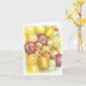 Tarjeta de saludo doblada con acuarela original reproducida de una variedad de tomates. Mensaje en blanco.