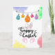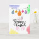 Celebra la Pascua con esta adorable tarjeta de felicitación que presenta un conejo lindo y huevos de Pascua coloridos.