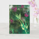 Esta tarjeta de felicitación en blanco es una impresión de la pintura acrílica, Flores rosadas, de Rosalie Forrest.