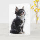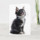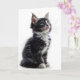 Adorable gatito negro y blanco de pelo largo mirando a su humano favorito.