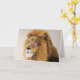 Una tarjeta de felicitación para sus mensajes que ofrecen un león hermoso