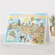 Luminosa y encantadora escena - una divertida vista de mapa personalizado del sur de California - encantadores personajes disfrutan del cálido sol de California mostrando Los Ángeles, San Diego, Anaheim, Palm Springs - Parque Estatal Anza Borrego y Parque Nacional Joshua Tree, así como las ciudades fronterizas de Tijuana y Mexicali en México.