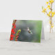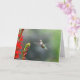 Pequeño colibrí lindo listo para alimentar en la flor preferida. Espacio en blanco del interior a modificar para requisitos particulares. Seguro para traer una sonrisa a la cara del beneficiario.