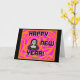 Puedes admirar mi dibujo de año nuevo de un alienígena gris con diseños naranja y rosa, el texto dice "¡Feliz año nuevo!" Llamo a este dibujo "Deseos de año nuevo de grises", añadido a esta tarjeta de felicitación horizontal estándar para desear a alguien un "Feliz año nuevo".
