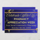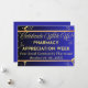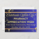 Muestra tu gratitud a tu equipo de farmacia favorito con esta elegante y personalizable tarjeta de felicitación. El diseño moderno se caracteriza por su bonito confeti de oro falso y su rico fondo azul oscuro. La plantilla de personalizable le permite añadir fácilmente el nombre de su farmacia y la fecha en la parte delantera. El interior está en blanco para que escribas un mensaje personal y sincero. Es una manera elegante de agradecerle y celebrar a su equipo de trabajo durante la Semana de Apreciación Farmacéutica.