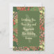Envía cálidos deseos con estilo con esta elegante tarjeta plana de vacaciones de 5x7 que presenta un vibrante borde floral y un centro verde suave con una sutil silueta de árbol de Navidad. El mensaje del frente es totalmente editable, lo que te permite personalizar tu saludo, mientras que la parte trasera ofrece espacio para un nombre y fecha personalizados. Con bordes curvos y un diseño festivo, esta tarjeta es perfecta para compartir alegría, paz y agradecimiento con seres queridos durante la temporada navideña.
