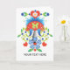 Imágenes estilizadas, de Mod y Folksy en una tarjeta de felicitación para todas las ocasiones. Viñeta con aves folclóricas, claveles, margaritas, mariposas y corazones para una mirada bonito y folclórica sobre un fondo blanco de nieve. Personalizar la cubierta y el interior para su mensaje o sentimiento personalizado.