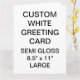El personalizado imprimió 8,5" GRANDE personalizado x 11" plantilla del espacio en blanco de la TARJETA de FELICITACIÓN del SEMI-LUSTRE del RETRATO (FOTO). El diseño, crea, hace sus los propios. Su foto, imagen, texto, logotipo, gráficos en CMYK a todo color imprime en cada lado de la tarjeta - dentro y hacia fuera. El área imprimible en la parte de atrás de la tarjeta es 5" x 7". Sobres blancos estándar incluidos. SEMI-LUSTRE: Un Libro Blanco fino, liso, brillante con final del semi-lustre diseñó para la impresión de la foto con la vibración óptima del color. contenido reciclado el 40% del poste-consumidor. Hecho e impreso en los E.E.U.U. El mejor para casarse, cumpleaños, aniversario, retiro, consigue-bien-pronto, y las tarjetas de Navidad.