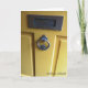 Una puerta amarilla con un golpeador de puerta de Claddagh y una ranura de correo tradicionales mostrados. Imagen capturada en Galway, Irlanda. Tarjeta de nota en blanco. Apropíese para cualquier tipo de nota amada.