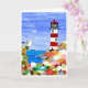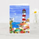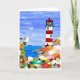 Una tarjeta de saludo para cualquier ocasión con un collage de papel pintado a mano de un faro. También hay posters y otros regalos disponibles. En blanco para tu propio mensaje.