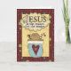Este navidad de encargo lindo que saluda características un hombre de pan de jengibre dentro de una manopla azul, con un bastón de caramelo y un corazón rojo. El frente de la tarjeta lee como sigue "Jesús es la razón de la estación." A la izquierda la página interior de la tarjeta hay el texto de encargo que lee a "Noel", y la página interior de la derecha lee "Felices Navidad." Todos los productos del zazzle son adaptables de modo que usted pueda comprar su producto en el estilo, la fuente, el tamaño, y el color que usted quisiera. Gracias a Cheryl Seslar@ www.dollardoodles.com por los diseños usados para crear nuestros productos.