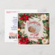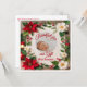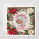 Celebre la alegría de la temporada con esta hermosa tarjeta plana diseñada, perfecta para compartir la bendición más reciente de su familia. La parte frontal presenta un borde floral festivo de poinsettias rojas, flores blancas, ramitas de pino y bayas, enmarcando un espacio suave de color crema donde una foto de su bebé da vida a la tarjeta. Las palabras 'Agradecidos por nuestro regalo esta Temporada' aparecen debajo de la imagen, expresando gratitud sincera.