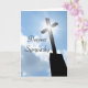 Fotografía original en color con una silueta de una cruz de iglesia con un efecto estrella brillante frente al cielo azul y las nubes blancas. El guión "Más profunda simpatía" está escrito en el frente y "Que los buenos recuerdos te traigan paz y comodidad en este momento difícil" está en el interior. Cambie fácilmente el texto o elimine para escribir a mano su mensaje más tarde. Una hermosa y simbólica carta de simpatía religiosa.