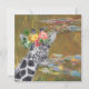 Bella y artística compilación que presenta el estanque de lirios de Claude Monet como fondo con retrato de jirafa con corona floral de acuarela superpuesta.