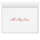Hermosas estrellas y corazones rojos y negros decoran esta tarjeta de saludo de bonito. Mensaje interno: Todo mi amor. Perfecto para El día de San Valentín Parte de la colección 'Corazones llenos de amor'.