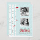 Una adorable tarjeta de Navidad personalizada presenta una hermosa ilustración vectorial de una escena invernal caprichosa de pájaros rojos posados en abedules sobre un hermoso fondo azul claro. Personalice con las fotos de su familia y un mensaje de su elección.