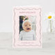 Esta encantadora tarjeta de Navidad personalizable presenta una plantilla de marco de foto ondulado minimalista con lazo rosa y parte posterior de franja borgoña. Muestra tu foto familiar favorita y agrega elegancia y calidez a tus saludos navideños.