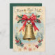Celebre la temporada de fiestas con esta carta de Navidades de inspiración vintage con una campana dorada adornada con un arco rojo festivo, hojas huecas y bayas. Con un suave y nostálgico entorno con delicados copos de nieve y acentos estelares, este diseño evoca el encanto de los clásicos saludos festivos. Perfecto para compartir cálidos deseos con la familia y amigos, esta tarjeta captura la esencia de una celebración de Navidades atemporales. Personalizar la parte de atrás con un mensaje personalizado para hacer que sus saludos de vacaciones sean verdaderamente memorables.