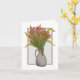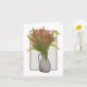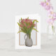 Tarjeta de felicitación o tarjeta de nota con tulipanes rosas en un jarrón