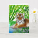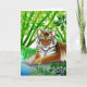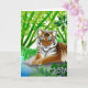 Un tigre de Sumatran de los jóvenes se sienta por un río pacífico de la selva en este diseño original del ilustrador/del diseñador Carolyn McFann del estudio de ronroneo de dos gatos.