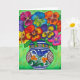 Motivo colorido y divertido de pintura de coloridas pansias de Lisa Lorenz en una tarjeta de saludo