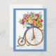 Esta tarjeta de saludo capta el encanto dulce de una bicicleta azul vintage, ilustrada con líneas suaves y nostálgicas y suaves tonos de acuarela. Junto a los manillares hay una cesta trenzada clásica, rebosante de una alegre mezcla de flores silvestres en tonos vibrantes: amarillos soleados, rojos vibrantes, violetas profundas, azul cielo y toques de vegetación. Algunos pétalos se deslizan suavemente en la brisa, añadiendo un sentido de movimiento y de capricho. El diseño, situado en un fondo claro y ventilado, irradia calidez, libertad y placeres sencillos. Ideal para cumpleaños, saludos de primavera o enviar una nota alegre sólo porque sea.