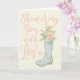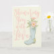 Esta tarjeta de felicitación es perfecta para enviar tus mejores deseos a la futura novia con motivo de su despedida de soltera. Esta tarjeta presenta el mensaje, "Lloviendo amor sobre ti" en la parte frontal en letras rosadas sobre un fondo marfil con una ilustración de una bota de lluvia azul claro que sostiene un ramo de flores. El interior de esta tarjeta de felicitación puede dejarse tal como está o personalizarse con tu propio saludo.
