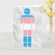 Una tarjeta de felicitación para un hombre transgénero, con un diseño audaz y llamativo de un icono de género humano en los colores de la bandera del orgullo transgénero, texto editable en el interior