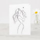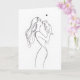 Elegante tarjeta de felicitación que presenta un hermoso dibujo de línea continua de una mujer compartiendo un tierno momento con su perro. Perfecta para el Día de la Madre, cumpleaños o cualquier ocasión que celebre a las mamás perrunas. En blanco en el interior para mensajes personales.