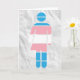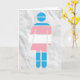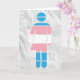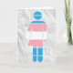 Una tarjeta de felicitación para una mujer transgénero, con un diseño audaz y llamativo de un icono de género humano en los colores de la bandera del orgullo trans, texto editable en el interior