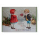 Tarjeta de saludo de Navidades Vintage/Victorianos. ¡Adorable niñito con un ramo hueco para una niña dulce! ¡Saludos de los navidades! ¡Que todas tus esperanzas más dulces se hagan realidad y que tus Navidades sean brillantes para ti!
