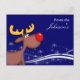 Rudolf el personaje de reno de nariz roja sobre un fondo nevado azul. Navidades muy amables para el diseño de tarjetas de felicitación.