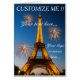 Una tarjeta de felicitación con una fotografía de la Torre Eiffel y de los fuegos artificiales, personalización de la tarjeta posible