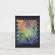 Esta tarjeta de felicitación muestra un impresionante diseño de colcha caleidoscópica en vibrantes tonos naranja, verde lima, púrpura y negro. El intrincado patrón de la colcha hipnotiza al espectador, asemejándose a una sinfonía de colores y formas que giran.