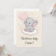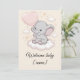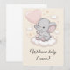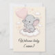 La forma más dulce de darle la bienvenida a un pequeño al mundo. Esta tarjeta de baby shower presenta a un pequeño elefante en una nube esponjosa, sosteniendo un globo rosa, con estrellas suaves pastel alrededor. Agrega el nombre del bebé para un toque personal que hace que esta tarjeta sea un verdadero recuerdo. Perfecta para una fiesta de bebé niña, para acompañar tu regalo, o para enviar como una sincera felicitación.