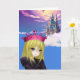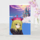 Tarjeta de chica de bonito hecha en un estilo anime, con un chica rubio con una corona y un colorido castillo flotante en las nubes. Personalice todo el texto para que se ajuste a sus necesidades. Este arte y tarjeta fue originalmente diseñado para mi nieta, espero que disfrutes.