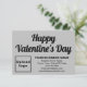 ¡Feliz Día de San Valentín! Una festividad encantadora para celebrar este mes de febrero y para anunciar también su negocio o promocionar su marca. Tarjeta de felicitación plana de pequeño tamaño que puede personalizar para poner su marca de negocios y con el saludo de San Valentín. Personalizar y úsalo para saludar a sus clientes este Día de San Valentín y como material de marketing para promocionar su negocio o promocionar su marca. También puede utilizarlo como accesorio del material de embalaje de su producto. Tarjeta de saludo de personalizable que puede utilizar para crear conciencia de marca. Los colores de diseño son textos negros sobre fondo gris. Para personalizar de esta tarjeta de saludo, sube el logotipo de tu empresa, escribe tu nombre de negocio, dirección, número de teléfono, correo electrónico y sitio web o tu página de red social comercial. Por favor, compruebe la apariencia en los lados delantero y trasero después de cargar el logotipo y escribir textos. Si la apariencia le resulta agradable, puede realizar su pedido ahora. Si necesita cambiar el tamaño y mover el logotipo y los textos para que encajen en esta tarjeta de felicitación o en el tamaño que elija, por favor cambie la herramienta de diseño. También puede cambiar el color de fondo, el color de fuente y el estilo de fuente en la herramienta de diseño. ¡Feliz Día de San Valentín! Te deseo más ventas esta fiesta.