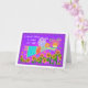 Con un fondo morado, este encantador ángel de arte folclórico con una torta de cumpleaños vuela sobre girasoles amarillos para ofrecer deseos especiales de cumpleaños. En su camino, la acompañan coloridas aves de arte folclórico y mariposas. Las velas encendidas en la tarta de cumpleaños producen una hermosa luz. Perfecto para niños y adultos, amantes de los ángeles y de los girasoles y aficionados al arte folclórico. Alegre, encantadora, linda y dulce! Disponible plegado o plano.