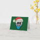 Tarjeta de Navidad con diseño de deportes de hockey, con color de fondo personalizable en la parte frontal y texto en la parte frontal y en el interior.