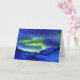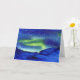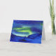 Esta tarjeta de felicitación baratizada de arte abstracto moderno es una tarjeta de ocasión en blanco para tu mensaje personal. Se trata de un cuadro original que destaca la belleza de las luces del norte, con un cielo nocturno azul intenso y verde cítrico.