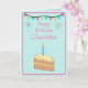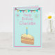 Una tarjeta linda que puedes personalizar mostrando una rebanada de pastel de cumpleaños y velas. Bunting de celebración y fuegos artificiales. Personalizar con el nombre y el mensaje que hay dentro se puede agregar o quitar siguiendo el mensaje "personalizar esta plantilla".