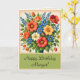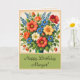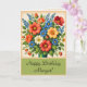 Flower Bouquet Happy Birthday Card con un toque de época. El frontal tiene dos líneas de texto personalizables en el fondo verde debajo de las flores. El interior también tiene dos líneas de texto que se pueden personalizar para adaptarlas a sus necesidades, o simplemente eliminar la línea dos si desea escribir un mensaje a mano.