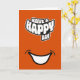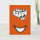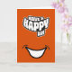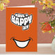 Una tarjeta de felicitación plegada de texto moderno de feliz cumpleaños que presenta un gráfico de sonrisa y un mensaje de 'Que tengas un feliz día'. Viene en una variedad de colores brillantes y también se puede personalizar al color que desees. La tarjeta se puede utilizar como tarjeta de cumpleaños o como tarjeta para cualquier ocasión. El mensaje interior es editable y se puede personalizar por ti.
